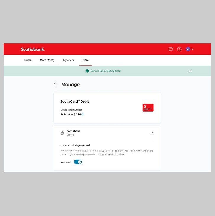 Lock or unlock your ScotiaCard™ Visa® DEBIT.